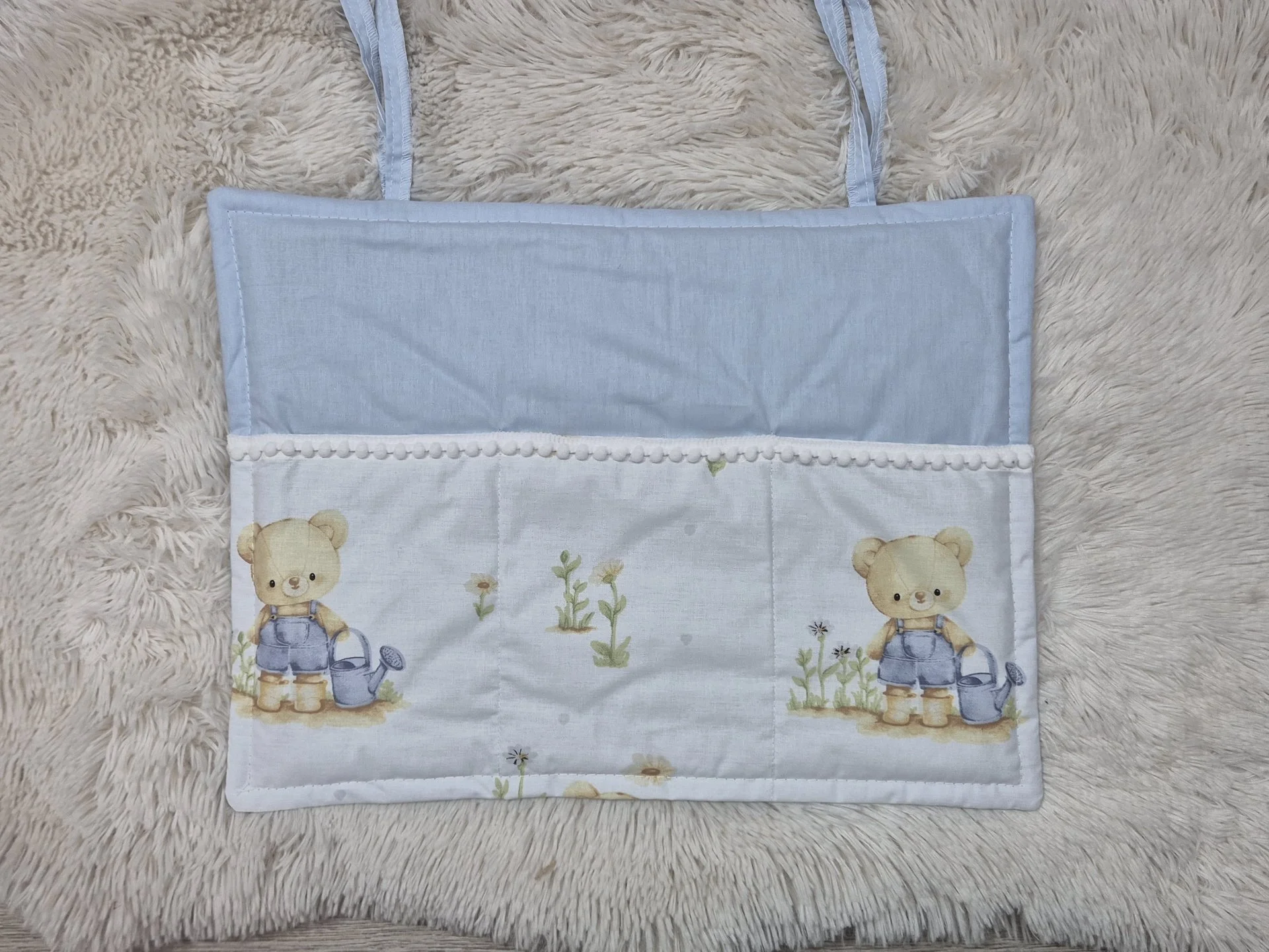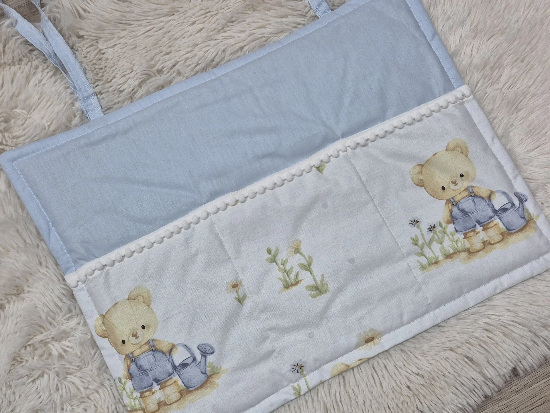 Органайзерът е снабден с 3джоба и може да се закачи на решетките на кошарата, за да е всичко под ръка.